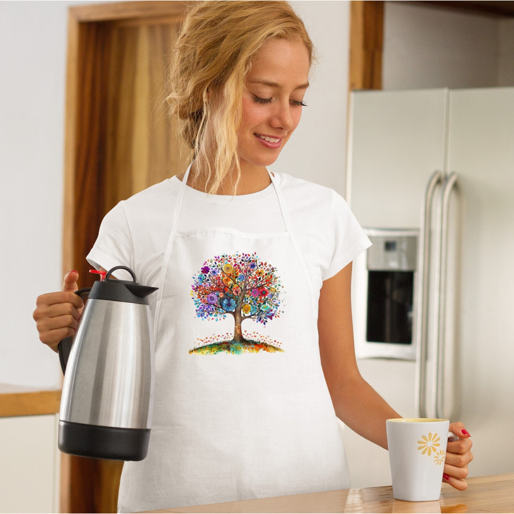 Tento barevný stromový vzor zástěry je ideální dárek pro vaši milovanou osobu. Skvěle se hodí do každé kuchyně nebo zahrady a dodá jim živý a hravý vzhled. Užijte si vaření nebo zahradničení s touto stylovou zástěrou!