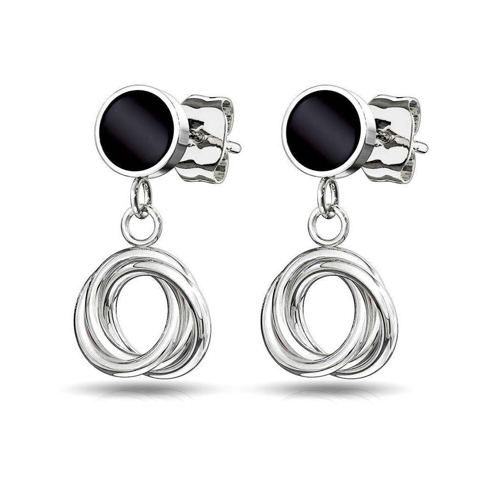 Visací ocelové náušnice s černou pecičkou menší